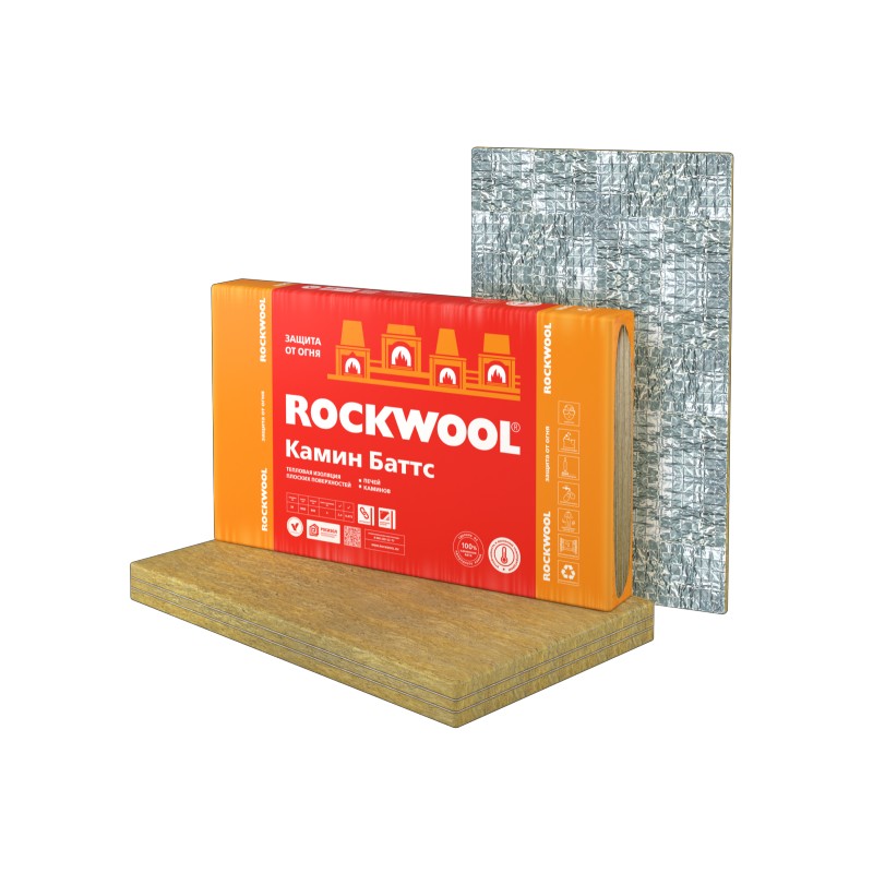 В производстве плит применяется специальная каменная вата – ROCKWOOL Камин Баттс. Материал используют для защиты внутренних поверхностей отопительного оборудования от воздействия повышенных температур.